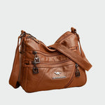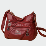 Bolsa de hombro elegante en color negro, con diseño práctico y construcción resistente. Posee varios bolsillos externos con cremallera que garantizan una organización conveniente y acceso fácil a los elementos esenciales. La correa larga ajustable permite un transporte cómodo en el hombro o cruzada, haciéndola ideal para el uso diario.