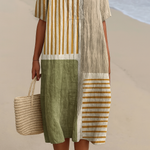 El Vestido Lea es la perfecta representación de sofisticación desenfadada. Con una mezcla de rayas suaves en tonos terrosos de verde y mostaza, este vestido exuda una estética tranquila y natural. El corte relajado y el escote en V realzan la silueta favorecedora, mientras que el tejido suave garantiza comodidad, haciéndolo ideal para días cálidos o encuentros informales.