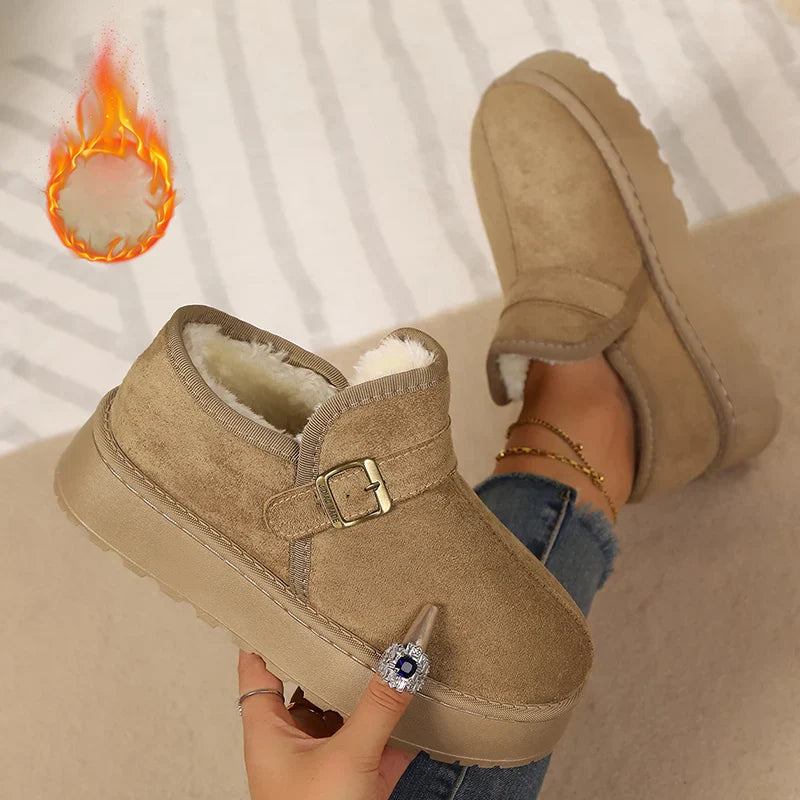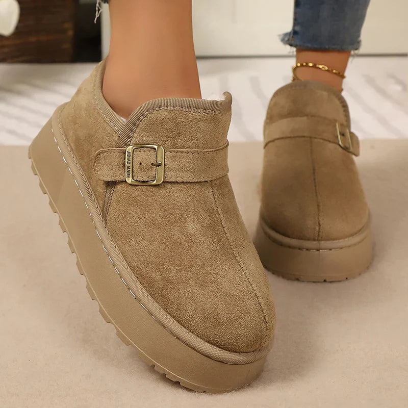 Las Botas Aurora han sido creadas para quienes no renuncian al estilo ni al confort en los días fríos. Con su acabado en ante sintético, interior grueso de felpa y suela gruesa antideslizante, estas botas ofrecen calor, estabilidad y un toque moderno a cualquier look. Perfectas para el día a día o escapadas de invierno, brindan ligereza y elegancia en igual medida.