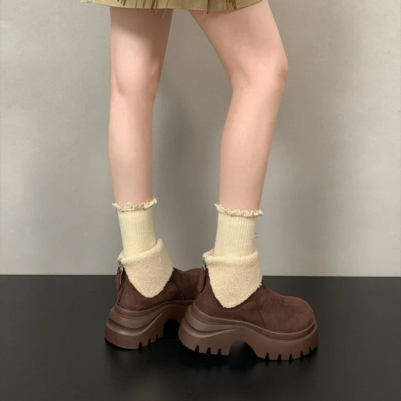Las Botas Jazmin combinan calor, confort y modernidad en un solo modelo. Con una suela de plataforma gruesa que ofrece altura extra y estabilidad, estas botas mantienen los pies calientes gracias al interior forrado en algodón suave. El diseño simple y elegante se adapta fácilmente a cualquier look, haciéndolas perfectas para el día a día o paseos al aire libre durante el invierno.